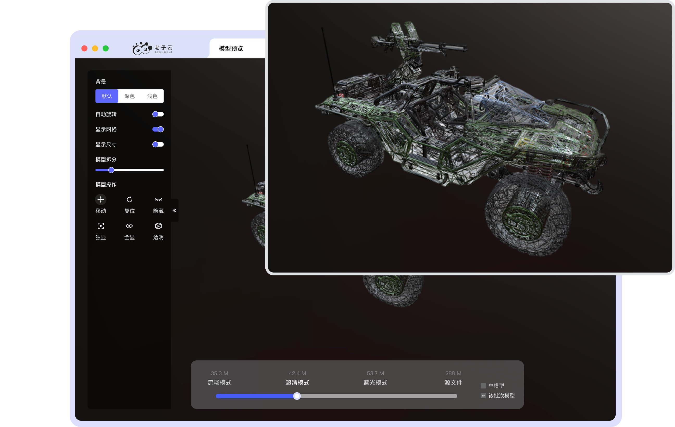 · 轻量化结果,实时渲染,实时呈现